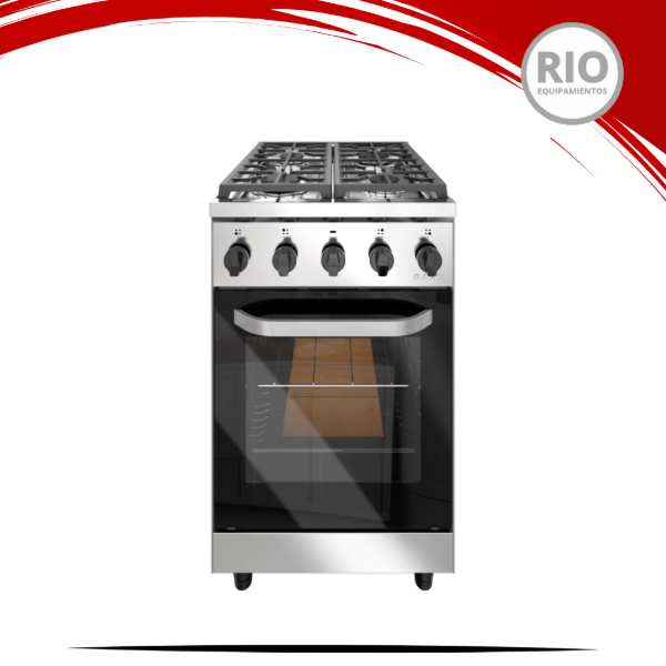 La cocina industrial Morelli Saho Kuma 51 es un modelo de 51 cm, ideal para el hogar, destacada por su frente y mesada de acero inoxidable, 4 hornallas, y un horno de 61 litros con ladrillos refractarios y válvula de seguridad. Ofrece alta durabilidad, rejillas de fundición vitrificadas y opción de puerta visor con vidrio templado
